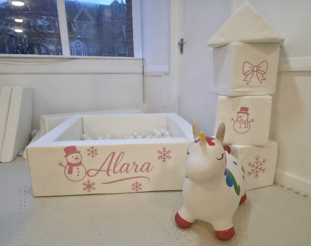 • Large white ball pit with your choice of coloured balls (including white pearl balls)