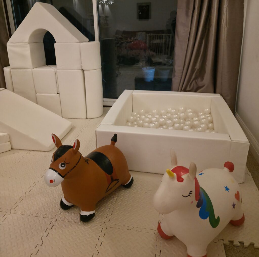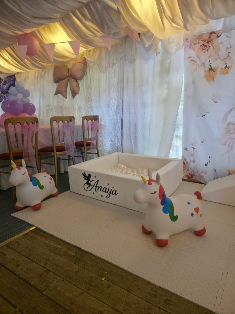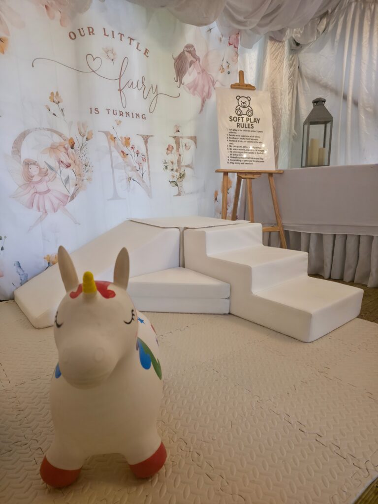 Designed to complement any event styling, our soft play is crisp white with soft play mats, matching shapes, a beautiful ball pit with a choice of coloured balls, and a selection of ride-ons – all kept clean, safe and ready for fun.