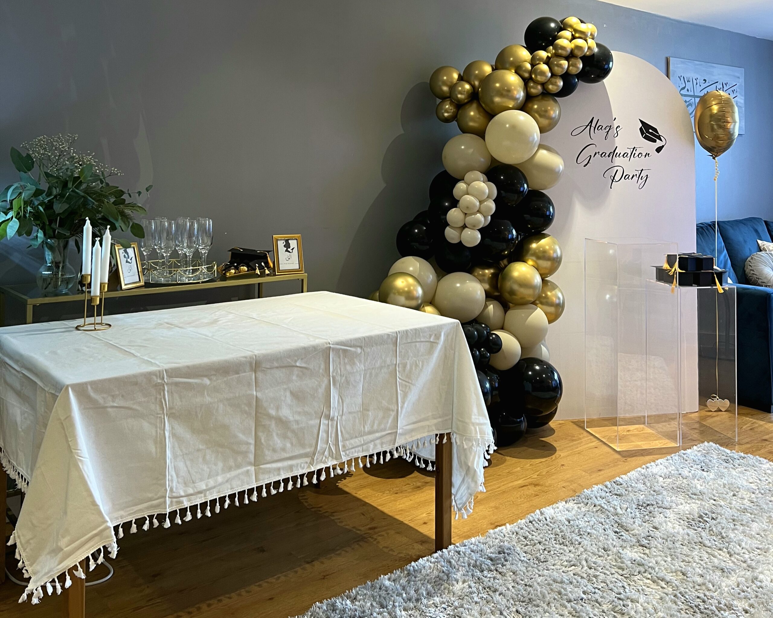 Alaq’s Graduation Party – Elegant Black, Gold & Cream Setup