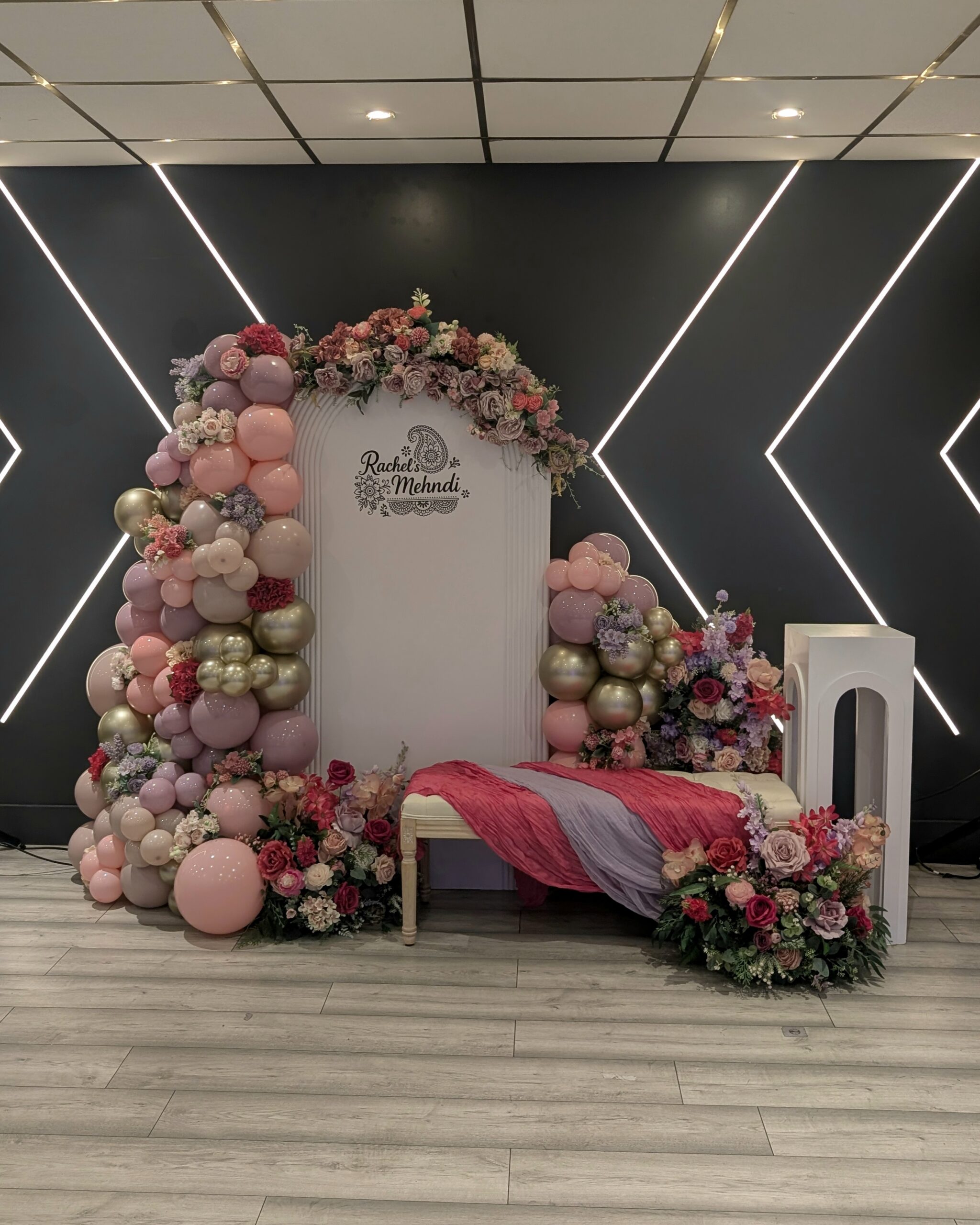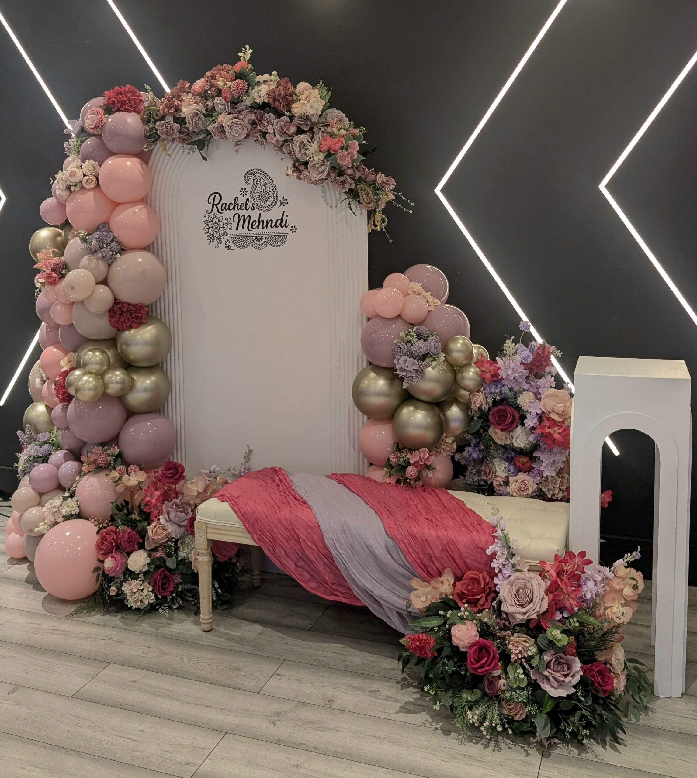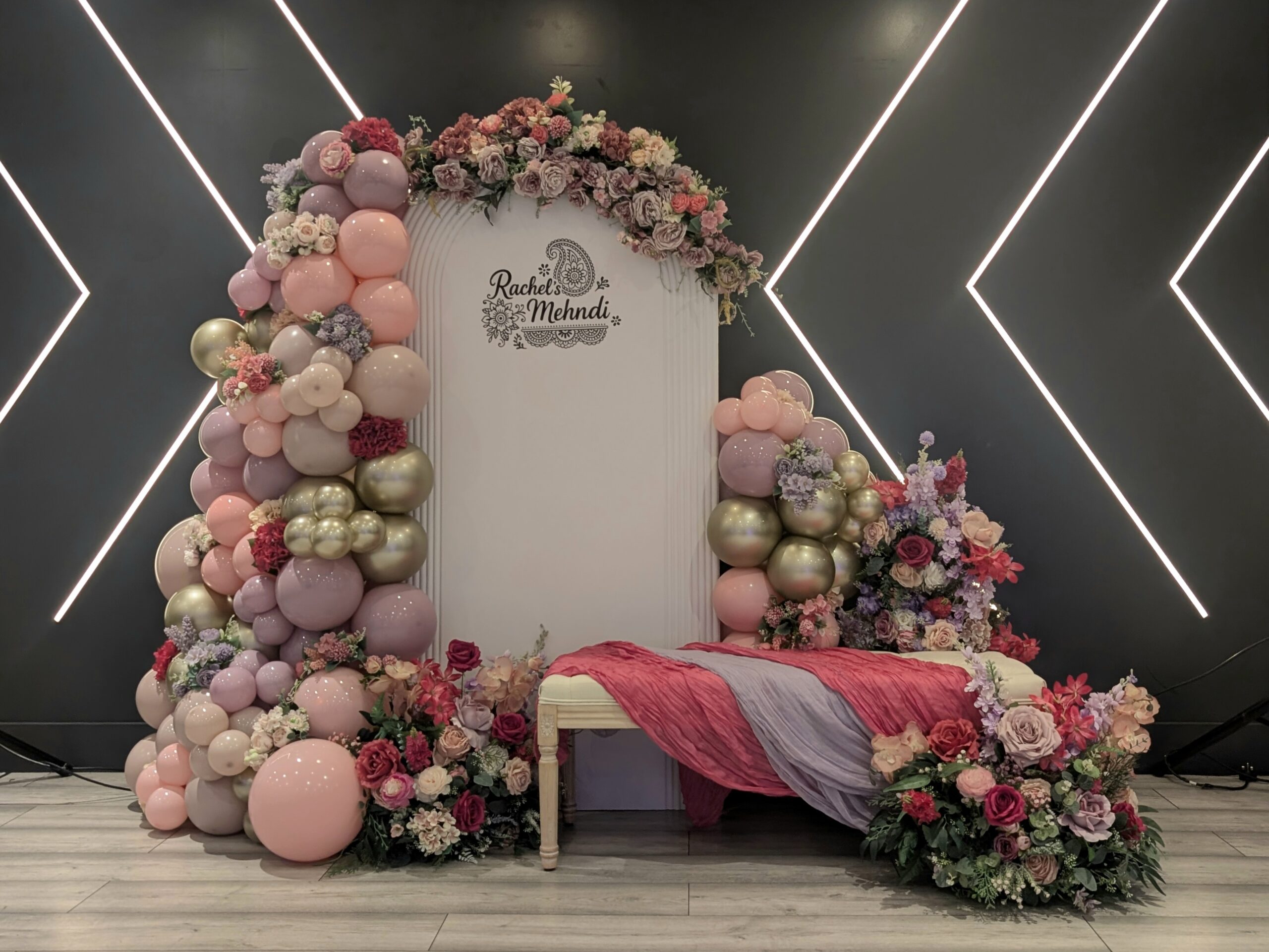 For Rachel’s Mehndi, we created an elegant and colourful setup blending traditional celebration with modern styling.